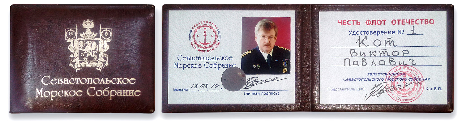 Членский знак отличия на лацкан кителя и именное номерное удостоверение выдаются членам Севастопольского Морского Собрания