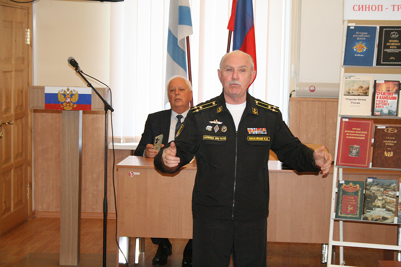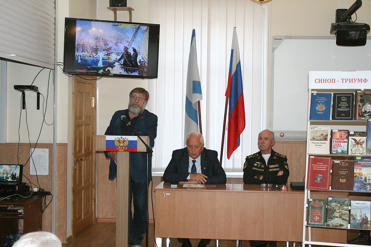 Кроме того, капитан 1 ранга Горбачёв С.П. интересно рассказал об увековечивании памяти триумфатора Синопа адмирала П.С. Нахимова во Владимирском соборе-усыпальнице адмиралов.