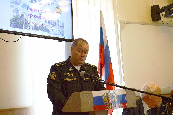 На Синопских чтениях к докладу о Синопском сражении был приглашён профессиональный историк, преподаватель Черноморского ВВМУ им. П.С. Нахимова капитан 2 ранга М.С. Крушатин. Доклад был изобиловал неизвестными для обычной гражданской публики фактами, и вызвал неподдельный интерес.