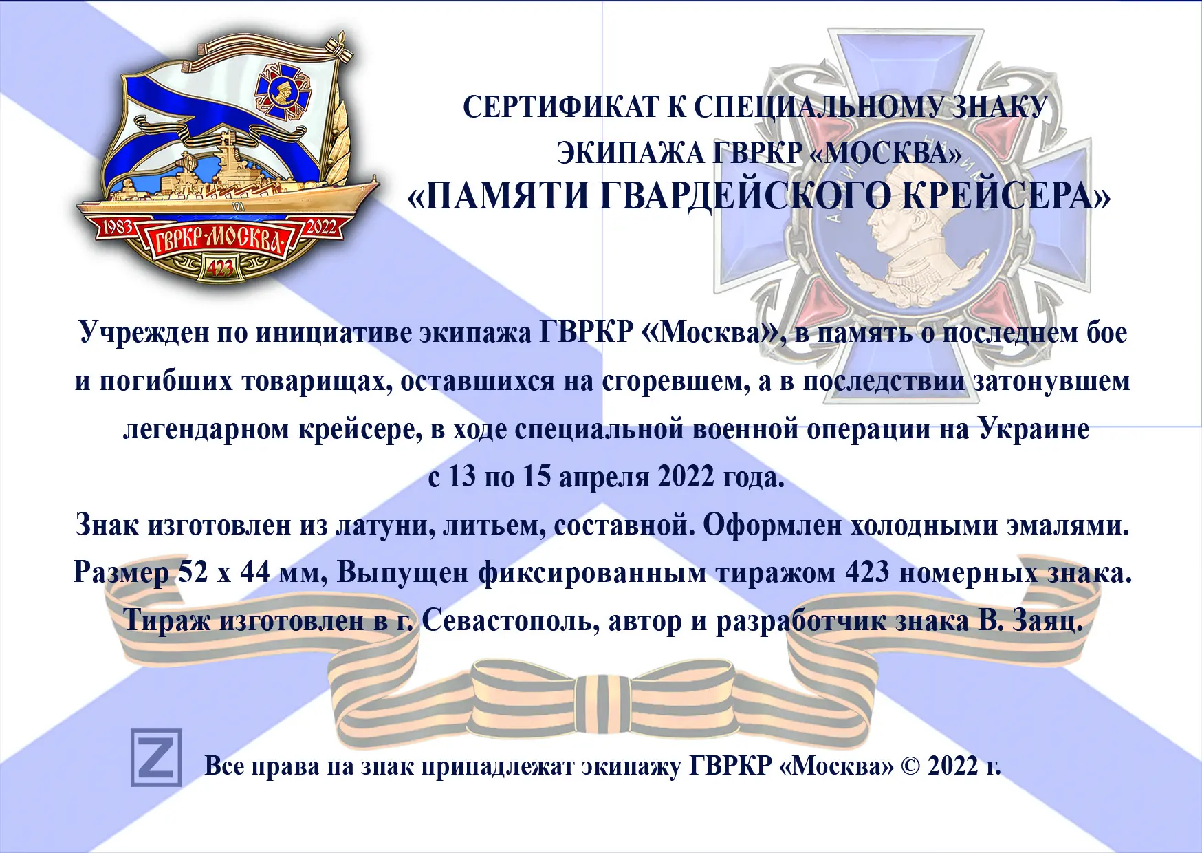 13 апреля 2022 года погибли моряки-черноморцы с гвркр "Москва", а 14 апреля 2022 года погиб сам крейсер. В результате пожара и взрыва боеприпасов он получил серьёзные повреждения и затонул во время спасательной операции.
